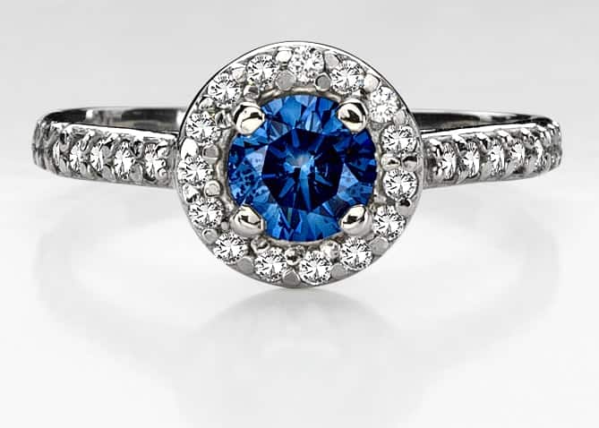 "Halo" microwave ring with 51ct lab-grown fancy vivid blue diamond set with natural white diamonds ($2,495, takaradiamonds.com)