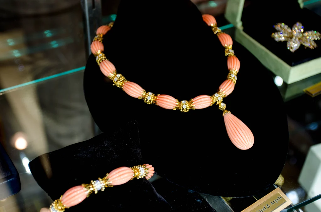 Van Cleef & Arpels coral diamond parure necklace and bracelet